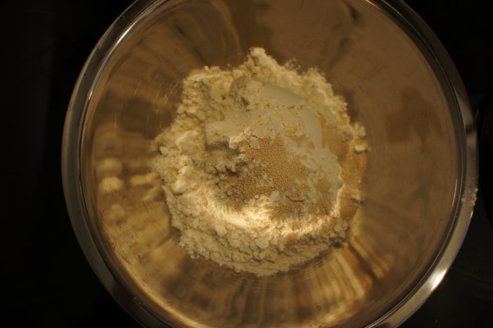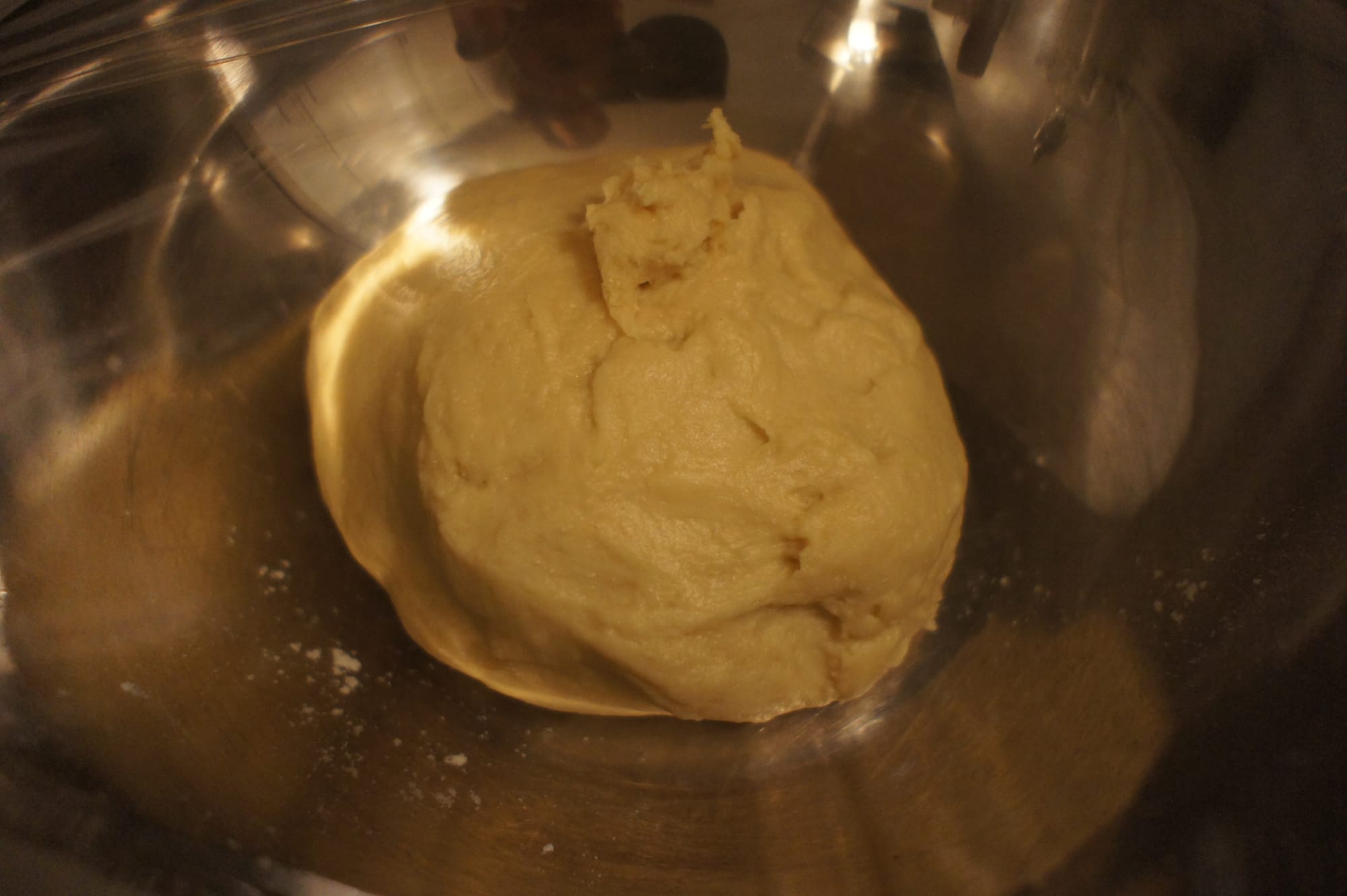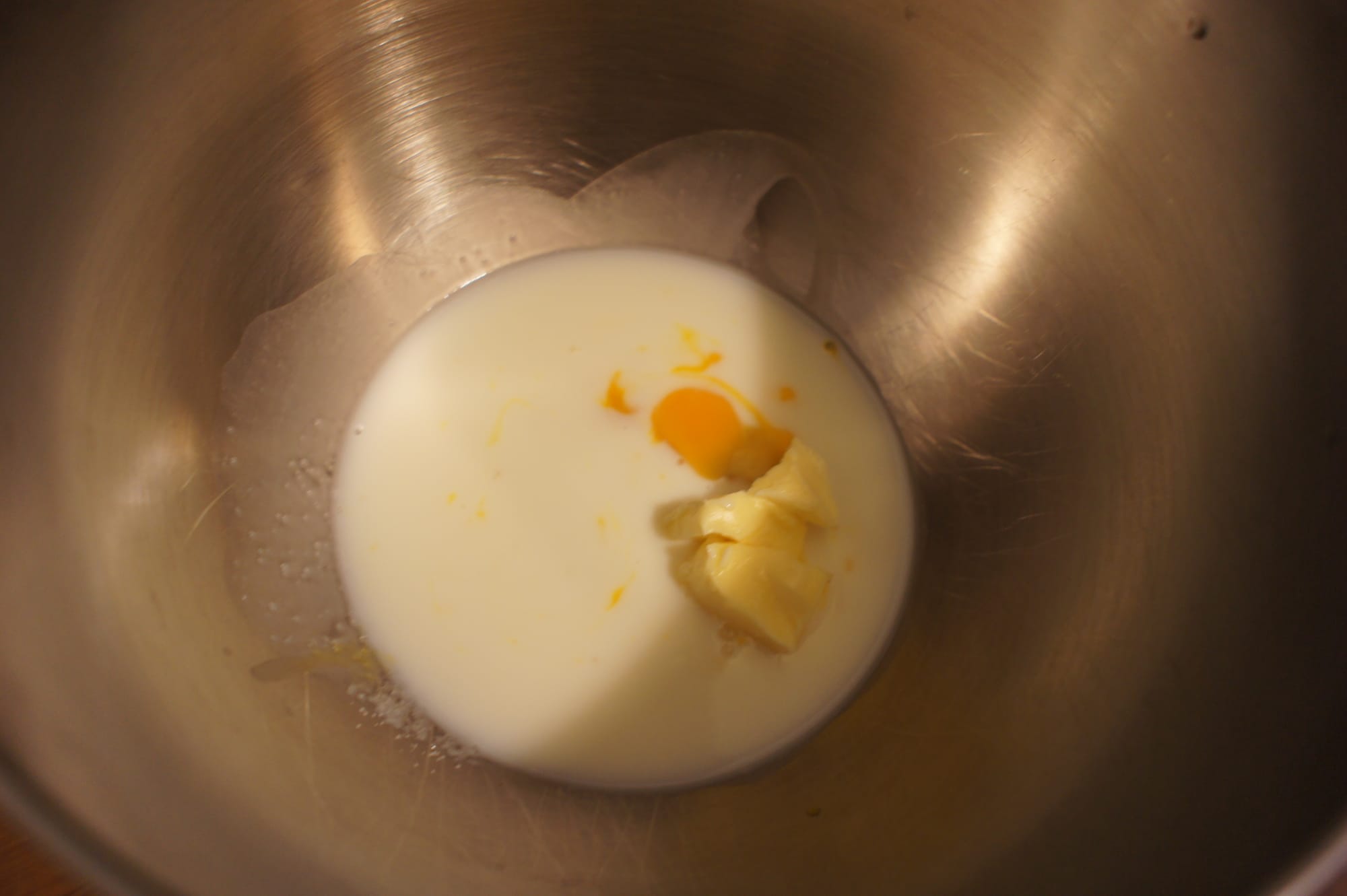 - Add the remaining ingredients except for the crunchy salt and half of the egg (about 25g), and mix on low speed for 4 minutes. Scrape down the sides and bottom of the bowl to ensure everything is incorporated.